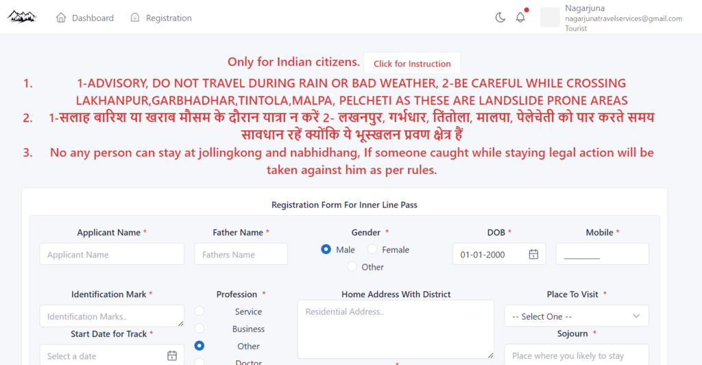 Step 04: Now you can update your details that are required for the Inner line Pass